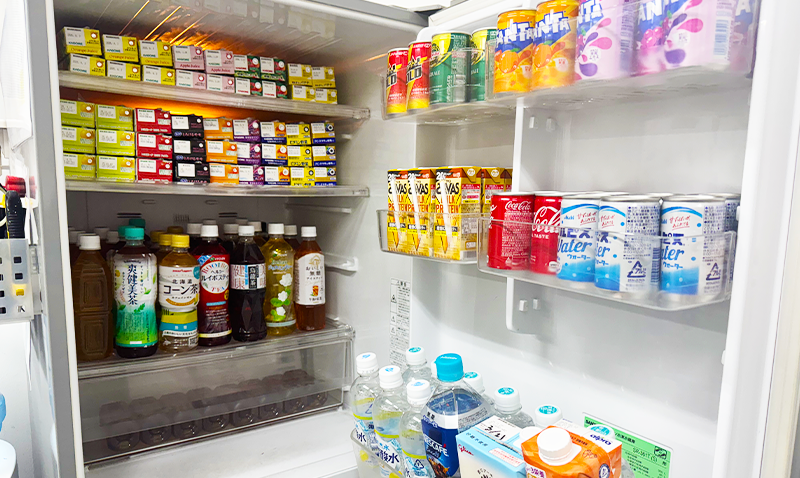 オフィスにはコーヒーやお茶、エナジードリンクなど多彩なドリンクを無料で用意。